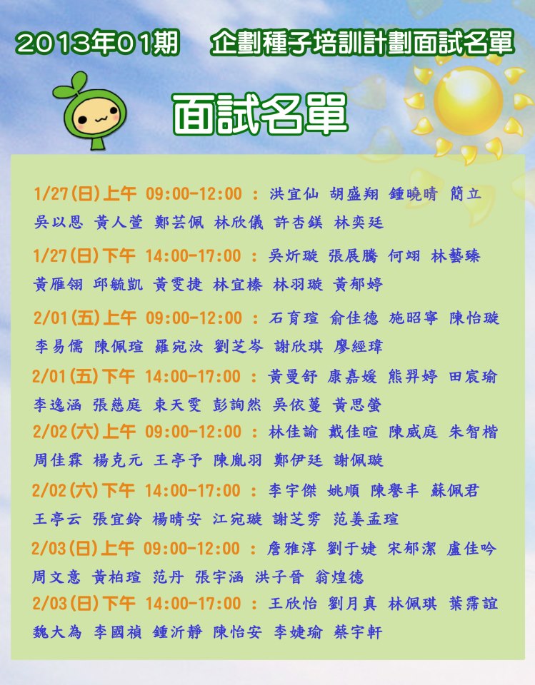 【公告】2013年01期TBSA企劃種子培訓計畫書審通過名單